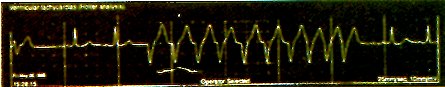 Fibrillation ventriculaireUne expérience a montré qu'un passé d'exercice physique confère une protection antifibrillatoire ventriculaire dans le cas d'un infarctus du myocarde, permettant ainsi d'éviter la mort subite trop souvent rencontrée dans cette maladie. La recherche de tachycardie ventriculaire est systématiquement réalisée sur les enregistrements d'électrocardiogramme ambulatoire. |